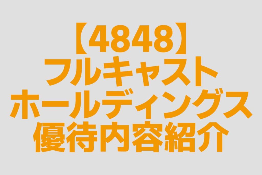 株式会社フルキャストホールディングス(4848)の株主優待紹介ページです。*2025/11/02時点での優待内容および過去の優待実績を紹介しています。 毎年6月末及び12月末日時点で、株式会社フルキャストホールディングスの普通株式100株(1単元)以上を保有... -