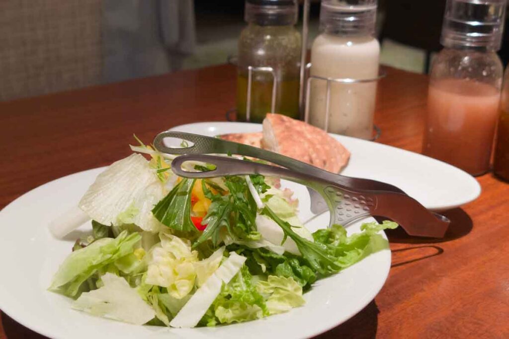 サラダは残念ながらやや鮮度に欠ける印象。(みずみずしさがあまりない)そして、白菜も含まれるようで、トングの形状もしゃぶしゃぶ、焼肉風な印象もあり…「しゃぶ葉?」みたない印象を持ってし!ということで、サラダもかなり楽しめました!