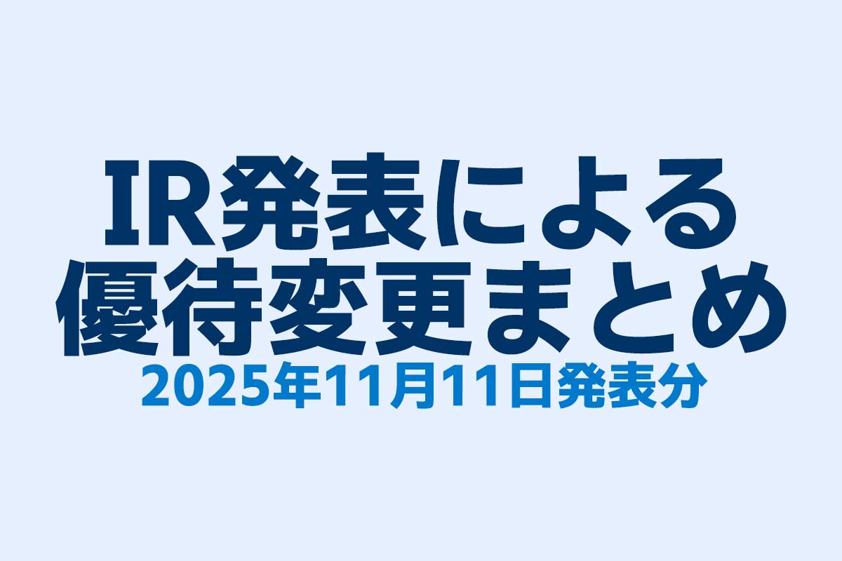 適時開示資料からチョイスした各社の株主優待の新設・廃止・拡充・縮小の情報をお届けします。