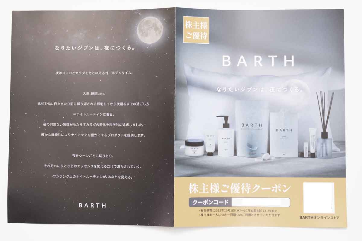 ▼また、BARTH(バース)公式ブランドサイト限定クーポンも同梱されていました